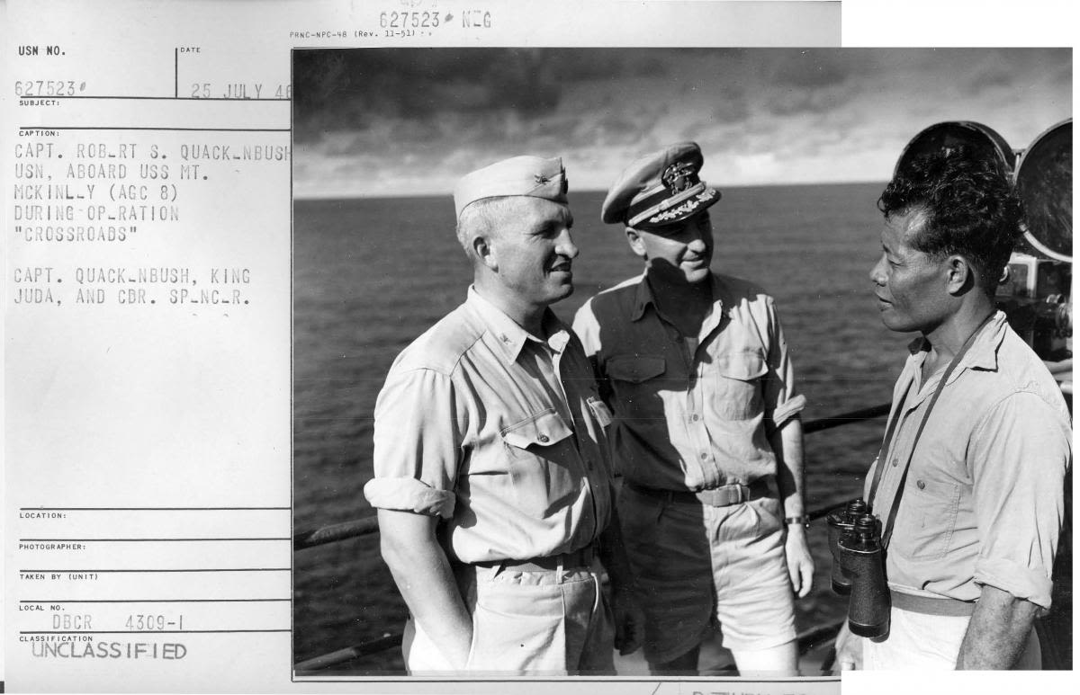 King Juda was asked — really instructed — by Commodore Ben Wyatt, American military governor of the U.S. government to temporarily leave the island while they tested.