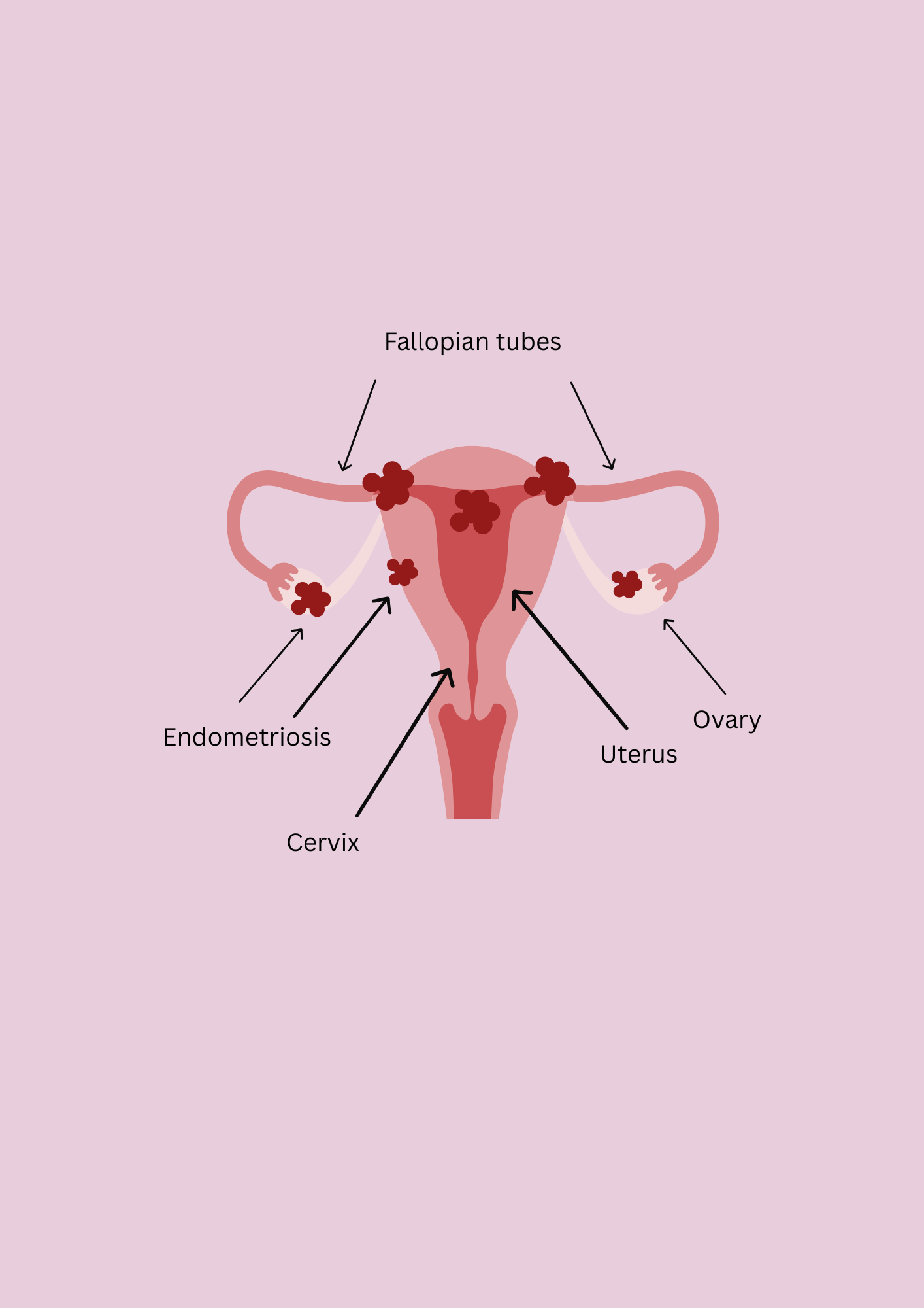 Endometriosis is a disease in which tissue similar to the lining of the uterus, grows outside of it in places that it does not belong. It can grow in the ovaries, in your back, bladder, rectum, on the bowels and can even spread to other destinations of the body, creating lesions. The tissue is hormonally responsive as estrogen will stimulate that lesion to grow.