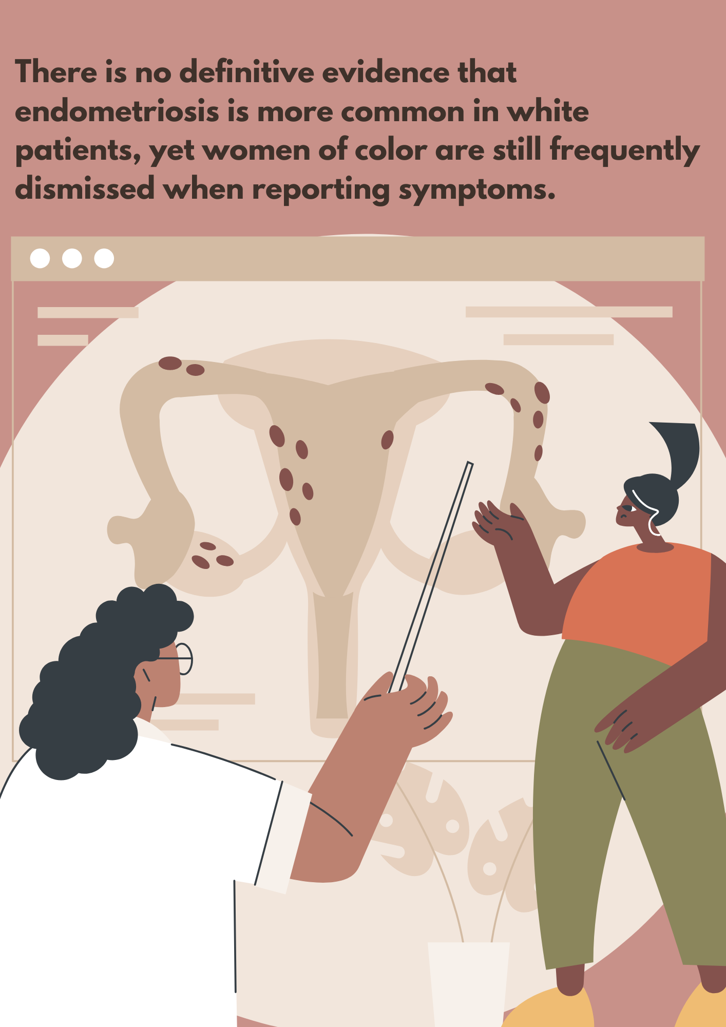 Racial disparities exist and are prevalent in the diagnosis and treatment of endometriosis. Black women continue to receive poorer care for endometriosis and are often misdiagnosed.