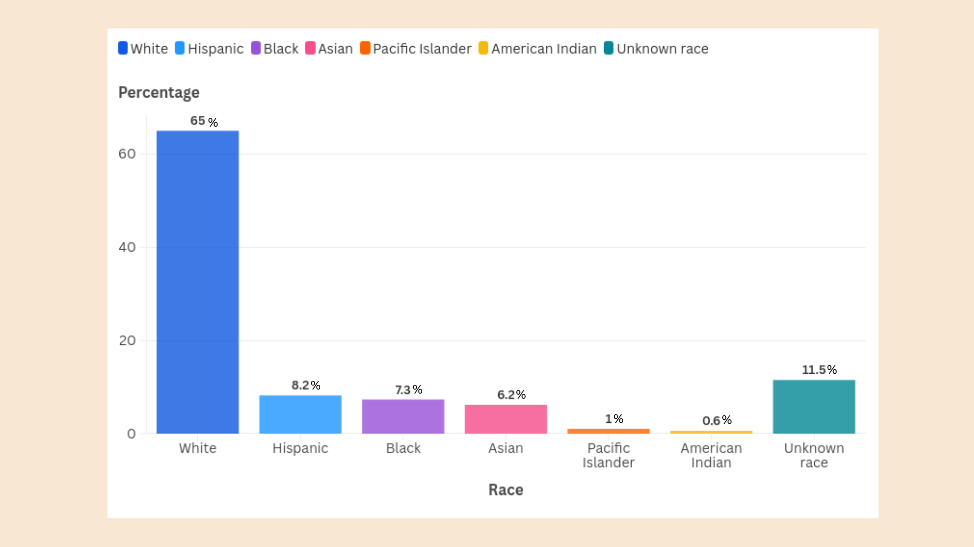 From a study conducted in 2022 that shows the percentage of women based on demographic who were treated for endometriosis with laparoscopy surgery. Data visualization made by Claire Plath.