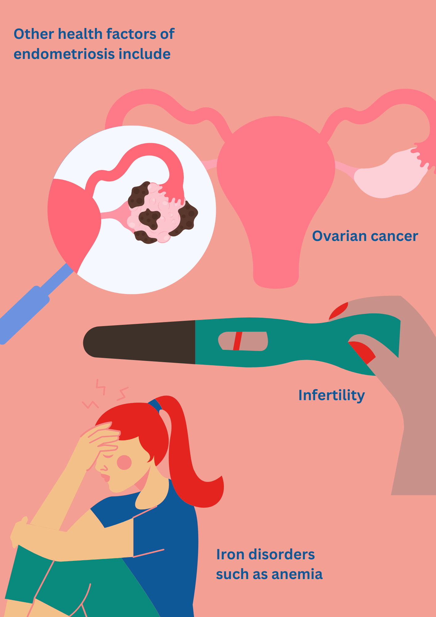 Women with endometriosis are suspected to be linked to other health and risk factors, a common one in particular being ovarian cancer.