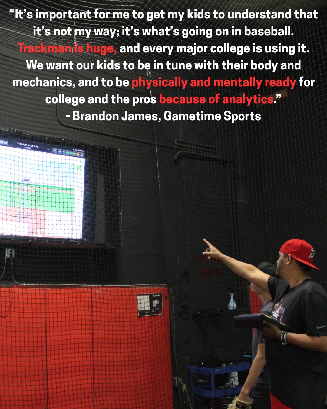 One walk through of James’ facility could show anyone that the Trackman and other fancy gadgets aren’t just for show. A lot of traditional baseball fans and parents of players might argue that hooking a middle schooler up to a Trackman is overkill — even taking the fun out of the game. But something else that isn’t very fun is elbow surgery, hours in a PT clinic recovering from an arm injury or lifelong shoulder damage because of overuse at a young age. According to James, the analytics prevent injuries and produce more intelligent, fine-crafted ball players.