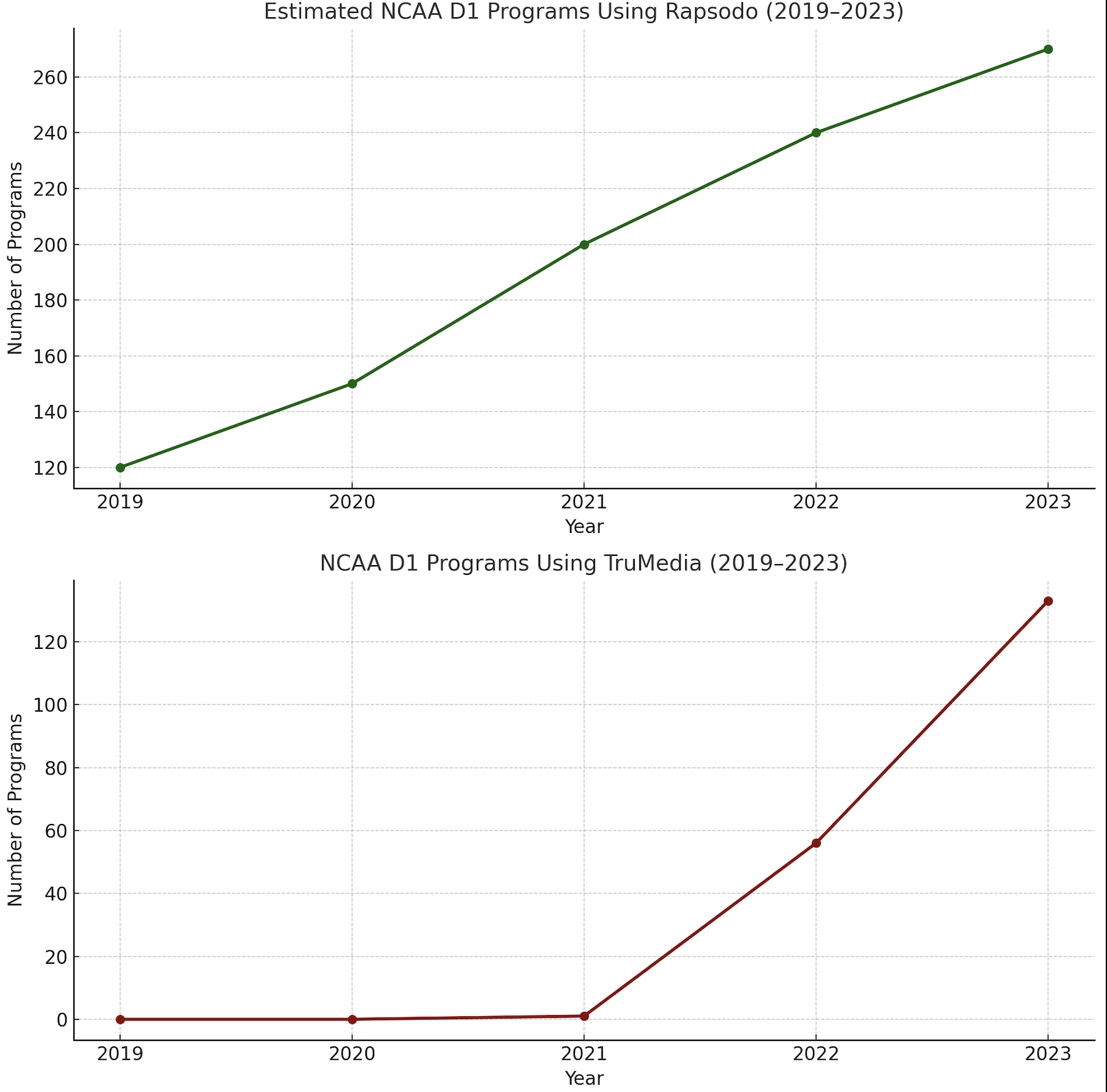Baseball analytic tools like Trackman and Rapsodo were brought in by top teams including North Carolina, Ole Miss and Vanderbilt, before making major impacts on smaller programs like Dallas Baptist University and Cal Baptist University in Riverside, California.